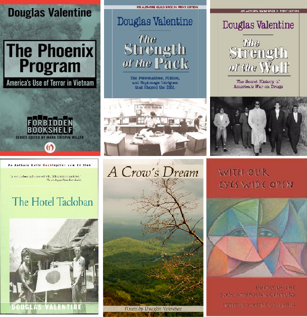 Douglas Valentine is the author of four books of historical nonfiction: The Hotel Tacloban, The Phoenix Program, The Strength of the Wolf: The Secret History of America's War on Drugs, and The Strength of the Pack: The Personalities, Politics and Espionage Intrigues that Shaped the DEA. He is the author of the novel TDY, and a book of poems, A Crow's Dream. He is also the editor of the poetry anthology With Our Eyes Wide Open: Poems of the New American Century (West End Press, 2014). He lives with his wife, Alice, in Massachusetts.
